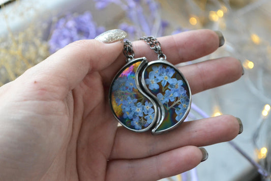 Best friend necklaces, Forget me nots pendant, Yin Yang necklaces