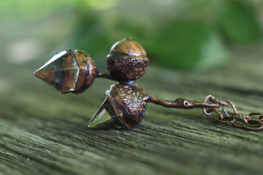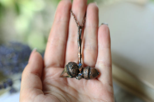 Blue labradorite necklace, with owl , juniper twigs and gemstones