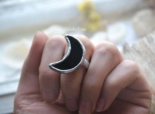 Moon Ring, Black moon ring, Half Moon Ring, Adjustable ring