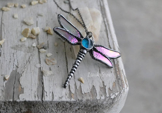 Dragonfly necklace, Glass Dragonfly, Stained glass pendant