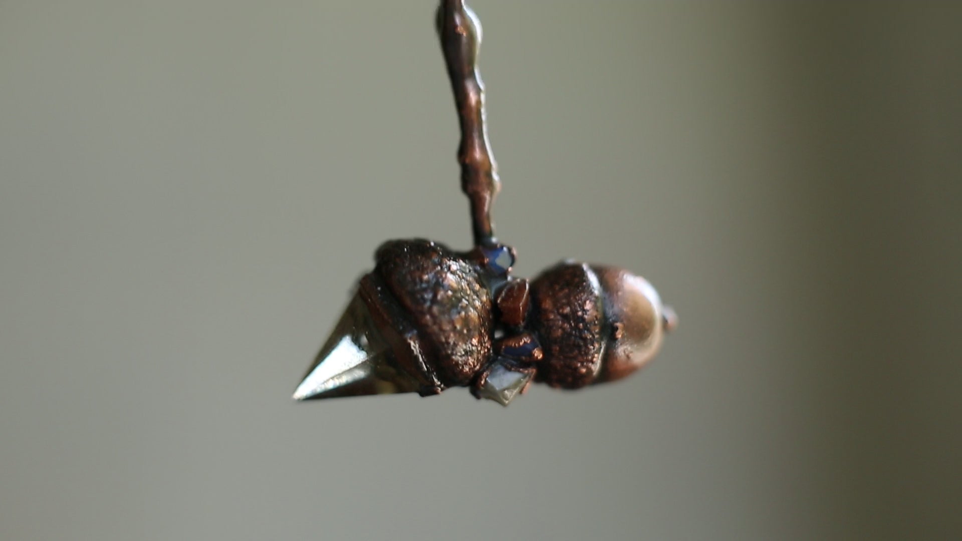 Necklace with real Acorn and epoxy crystal , opalite, sand stone, cats eye gemstone, electroformed with copper (using electroplating method),. After antiqued with patina, polished and covered with a clear protective jewelry lacquer. Wonderful necklace, absolutely naturally looking. This pendant is special and the only one of its kind.